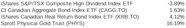 That’s not a typo — gold is up over 16%, while high-dividend Canadian equities are down nearly 4%. Bonds are hanging in there, especially real return bonds, which are quietly outperforming the traditional bond market.